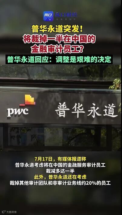 7月16日,路透社援引两位知情人士消息称,普华永道考虑将中国的金融服务审计员工裁减多达一半。