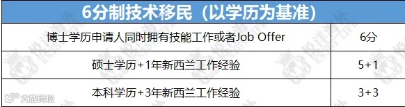 新西兰6分制技术移民
