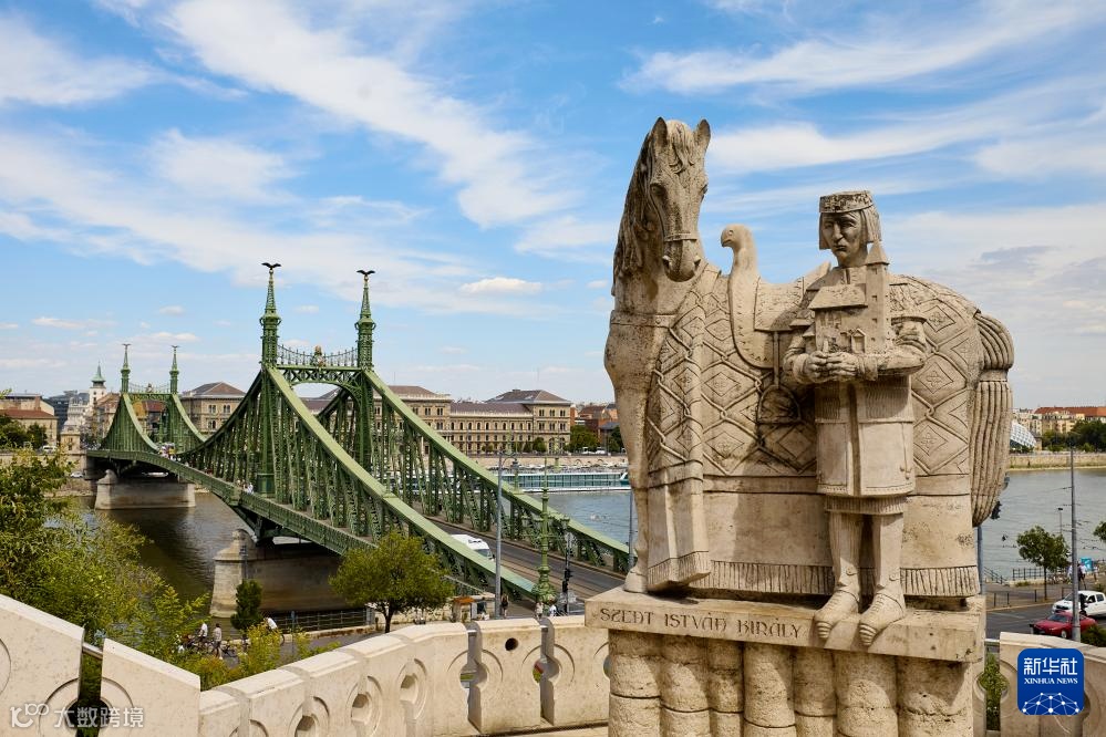 匈牙利布达佩斯伊什特万一世雕像和自由桥