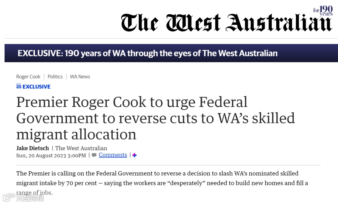 库克表示,当地就业是他的“首要任务”,但西澳州工作量大增,需要完成大量积压工作。他说:“我们需要注入大批技术工人,让工作继续进行,这样我们才能让更多的人入住房屋,建造更多的基础设施,并维持无法填补的高专业岗位。”“联邦需要立即审查这一决定。”