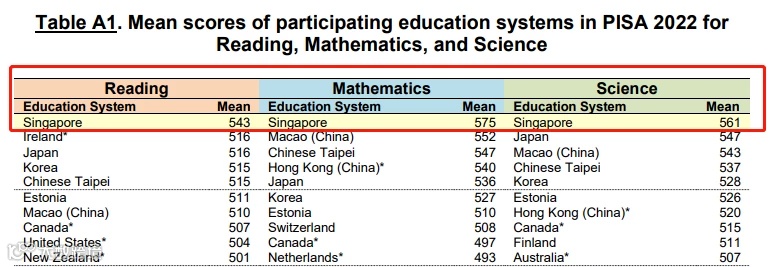 经济合作与发展组织(OECD)公布的2022年国际学生评估项目(简称PISA)显示,新加坡在全球81个教育体系中,拿下阅读、数学和科学3项测试冠军。