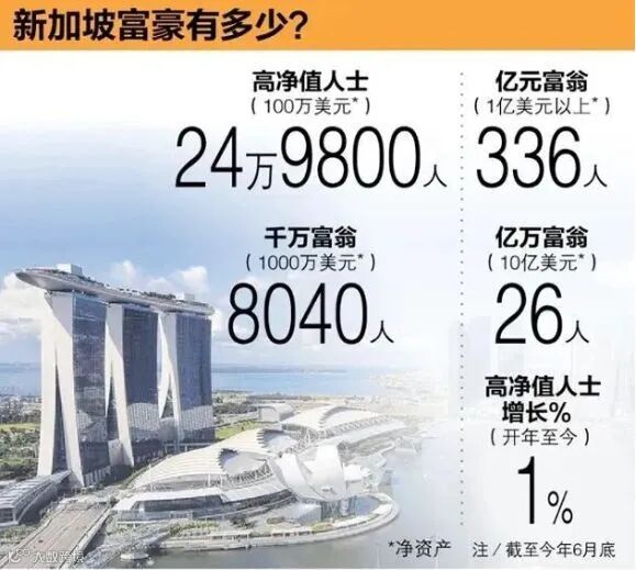 伦敦投资咨询公司Henley & Partners公布的数据,新加坡的百万富翁人数更是达到了24万9800人,名列全球第五!