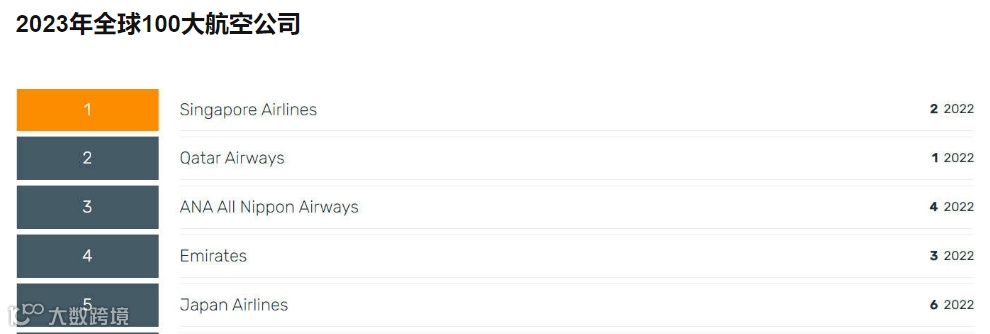 英国航空顾问公司Skytrax公布的《2023全球最佳航空公司》排名,新加坡航空再次拿下世界第一!这也是新加坡第五次获英国航空顾问公司Skytrax的“全球最佳航空公司”殊荣。