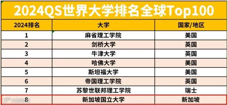在大学上,新加坡的表现也十分亮眼。2024年QS世界大学排名出炉,新加坡国立大学高居全球第八,南洋理工大学全球第26!