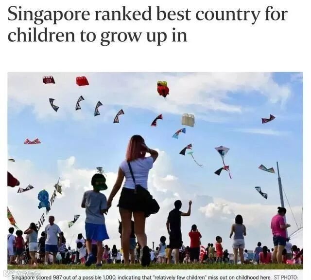 根据国际非政府组织拯救儿童基金会发布的报告显示,新加坡是最适合儿童成长的国家。数据显示,在满分1000分中,新加坡获得了987分,远高于第二名挪威、第三名瑞典和第四名芬兰。