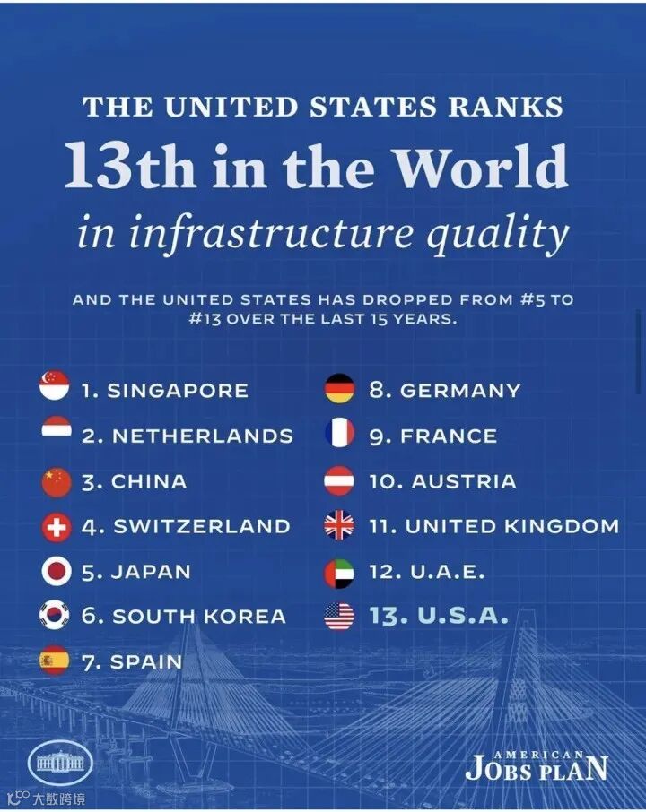 在美国权威机构统计的全球基建排行榜中,有着“基建狂魔”之称的中国竟然排名第三,第一竟然是新加坡!