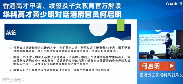 1.续约可以透过工作、开公司、参股,无行业歧视,核心是需对香港做出贡献;