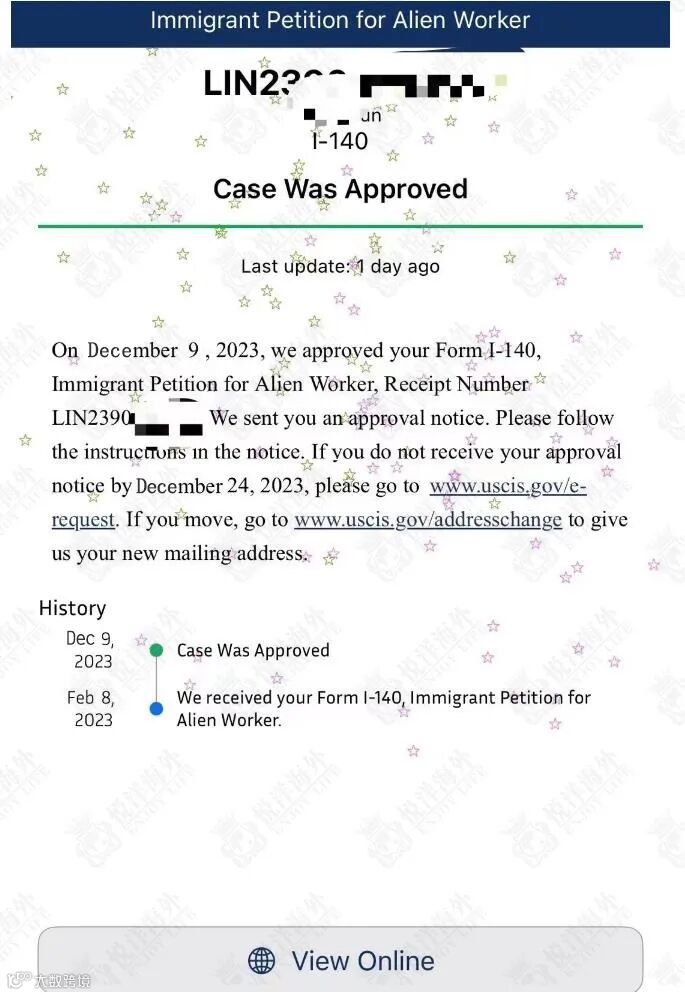 申请文件经过两个月的细致琢磨与整理,在2023年2月递交,12月H医生顺利拿下EB-1A美国人才移民申请批复!
