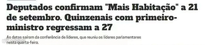 葡萄牙共和国议会9月6日举行领导人会议,决定议会将于9月21日审查葡萄牙共和国总统否决的有关住房措施的法令。葡萄牙总统将于9月27日出席议会进行讨论。
