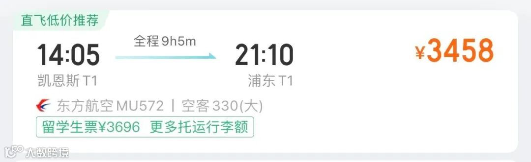 同时,中国东方航空还将限时恢复:上海往返凯恩斯的直飞航班!