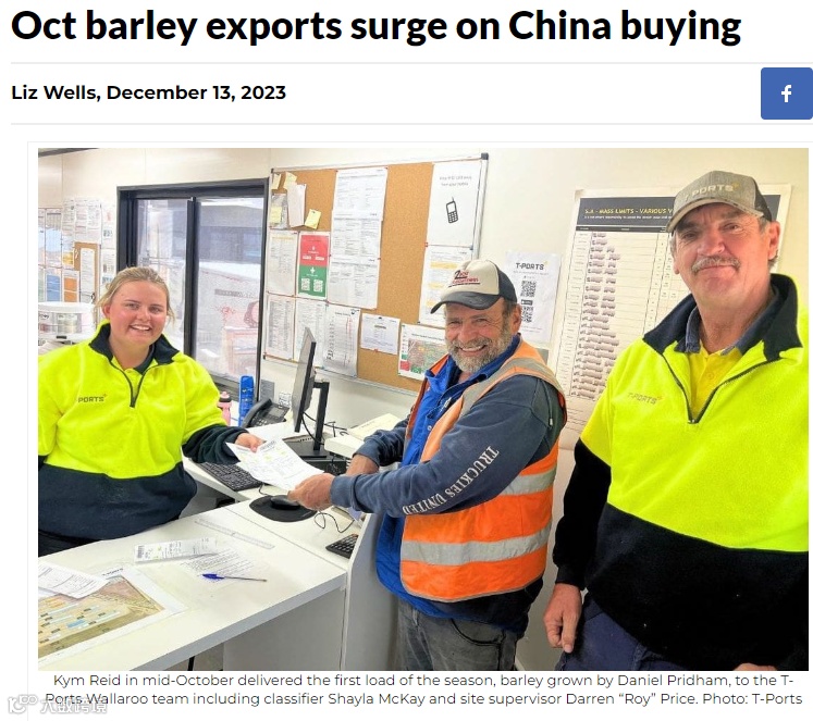 此外,从今年10月起,两国的大麦贸易已经全面恢复。
