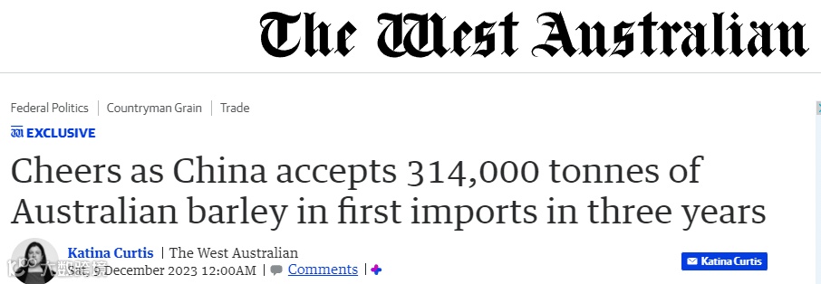 根据最新数据,自大麦相关的贸易限制取消以来,澳洲已对华出口了31.4万吨大麦,价值1.39亿澳元,这使得澳洲迅速成为中国的第二大大麦进口来源国。