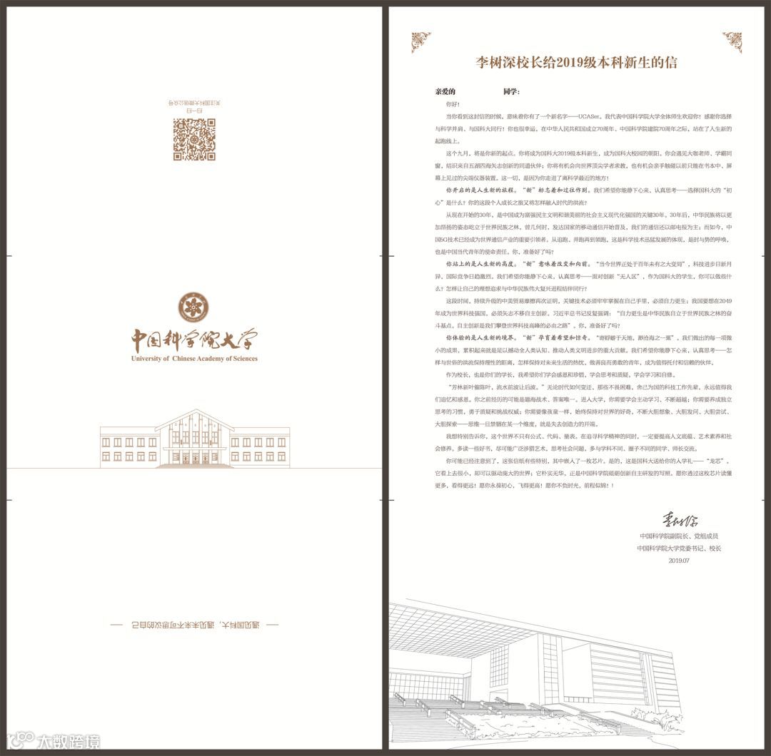7月9日,国科大2019级本科生首份录取通知书打印完成并送出,随之一起寄出的还有《全球通史》、国科大校长李树深写给本科新生的一封信等。
