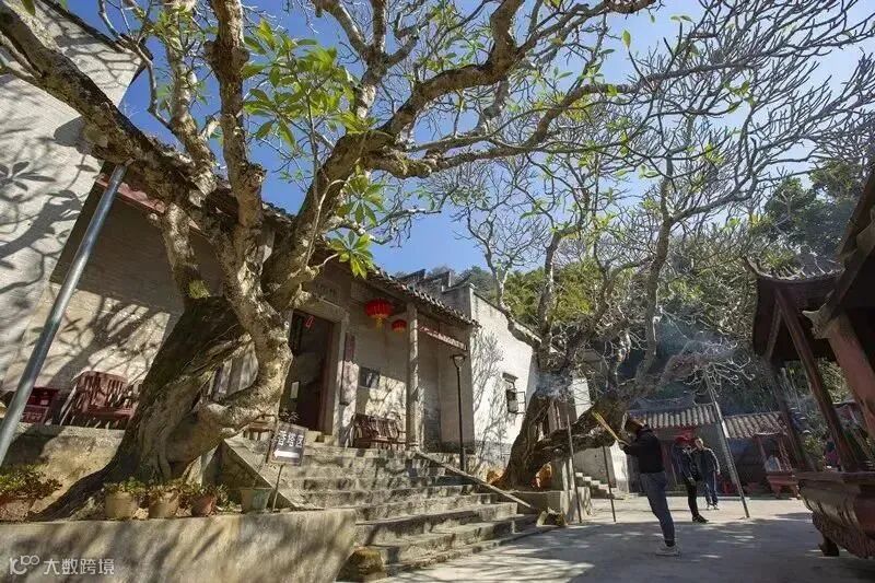 院内有四棵200多年的黄色鸡蛋花,现仍长势旺盛