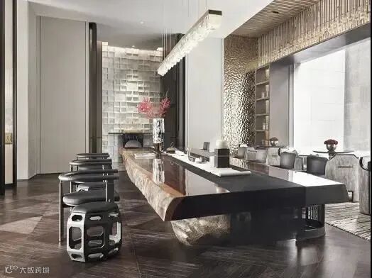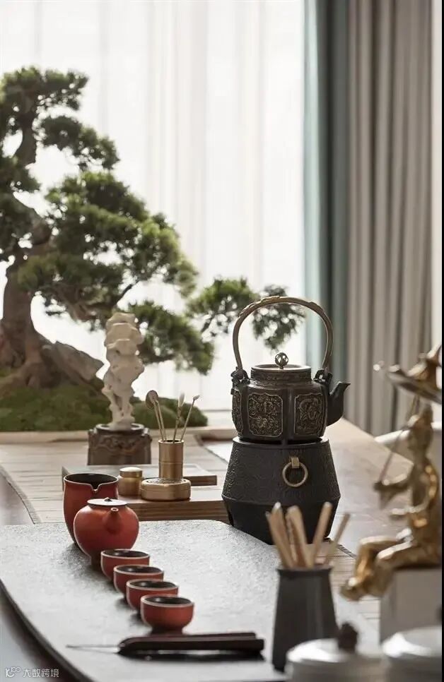 自然别致的茶台,搭配花瓶和摆件的点缀,保留其古朴与天然的味道,为来到这里的人们营造轻松从容,潇洒写意的禅意氛围。