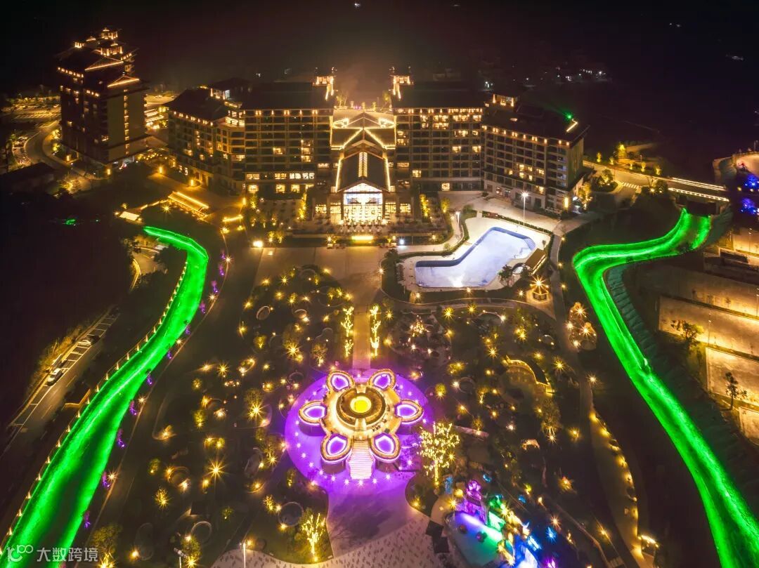 翔顺金水台温泉特色小镇规划布局融合于自然,汇集湖、光、山、色等自然风光。在这里的建筑皆为依山而建,把水的柔和、山的秀美、禅的气息相互融合,使山、水、人三重元素蕴含种种禅意。