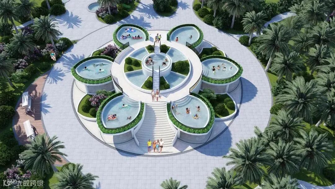 以金水泉中间花蕊核心,由荷花花瓣引出园路脉络,每一片花瓣形成一个相对独立的庭院空间,温泉养生餐厅、特色温泉池和水上乐园会所等温泉设施,带给你一站式精彩游玩体验,一起享受放松的美好时光~