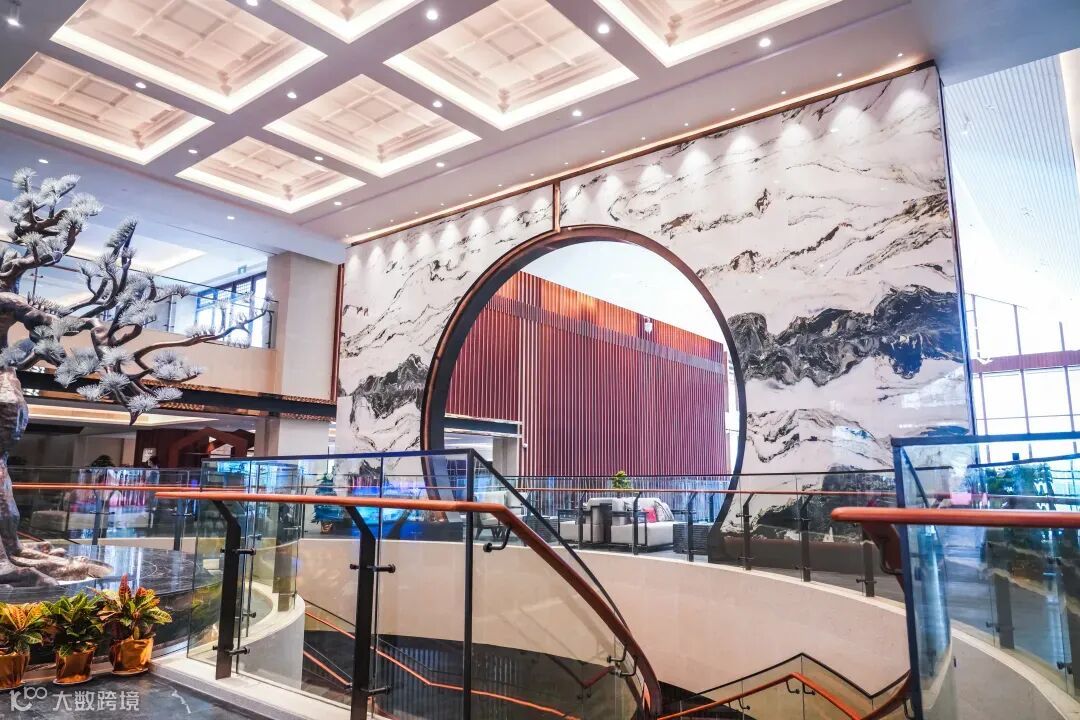 自助餐厅里的飞鸟“游动”着打破了空间的寂静,舒缓了旅者的内心,是艺术与自然的结合,将竹林葱郁之景汇入室内,使得在室内也可以走进自然。