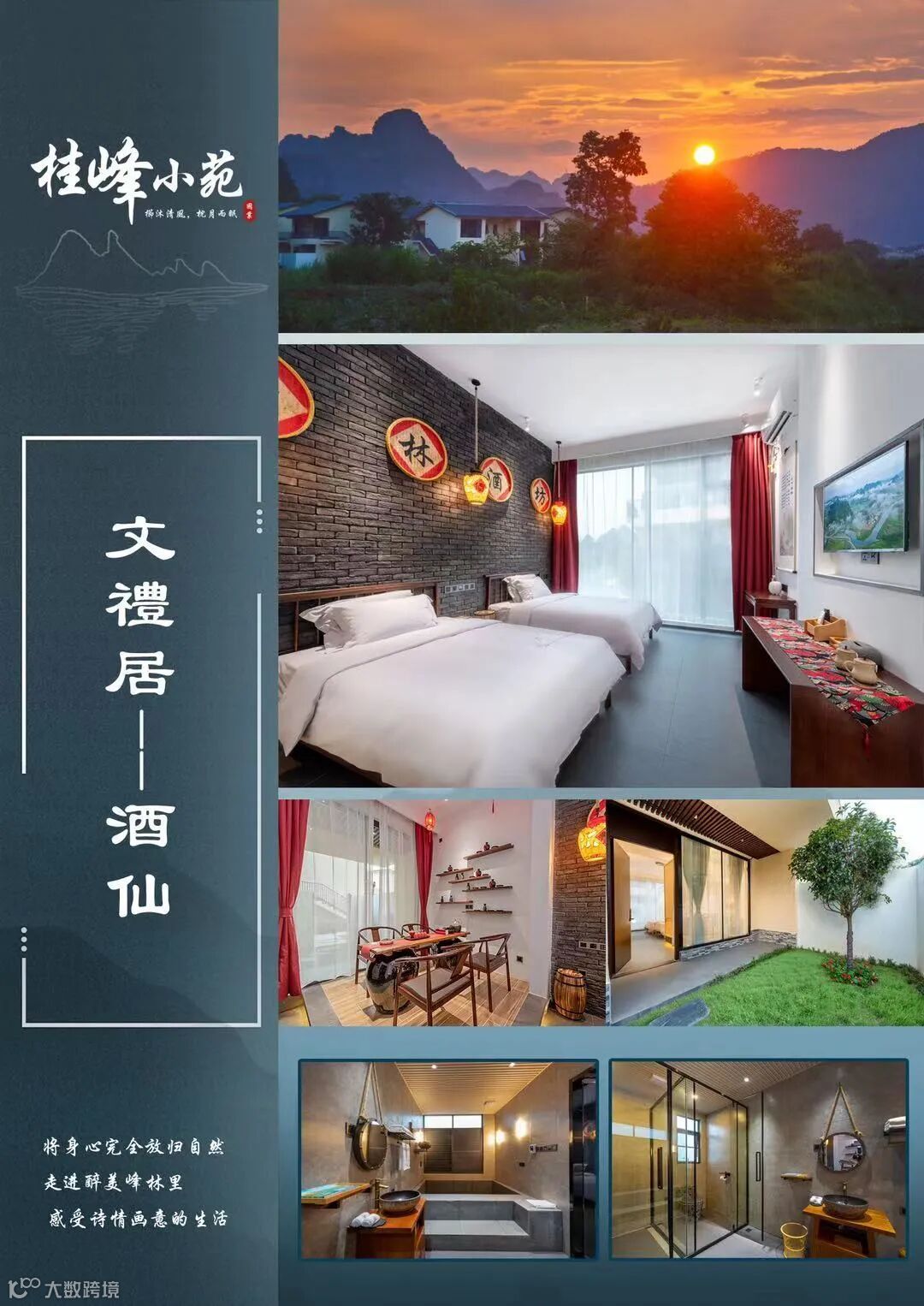 汽车/晚餐/峰林小镇桂峰小苑 君悦轩、文礼居、字在里、国粹院(房型随机安排大床/双床) |