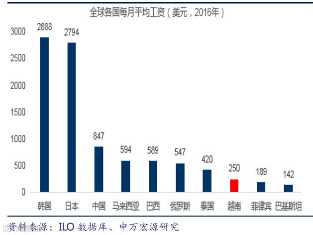 越南人口结构非常年轻,劳动力成本十分低廉。