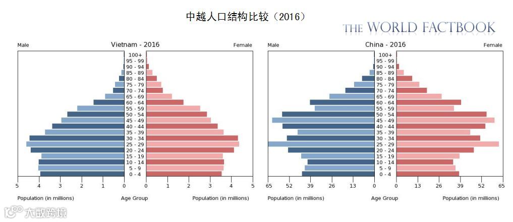 2016年越南人口年龄中位数仅为30.5岁,相比之下,日本是47.3岁、德国47.1岁、美国38.1岁、中国是37.4岁。