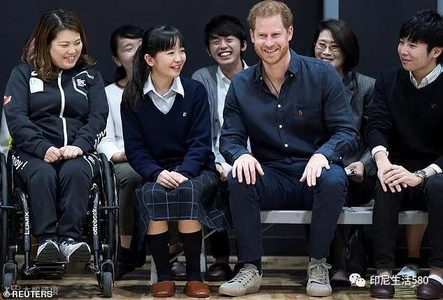 在参加活动期间,哈里王子表现地亲和力十足,还与日本学生们合影留念。