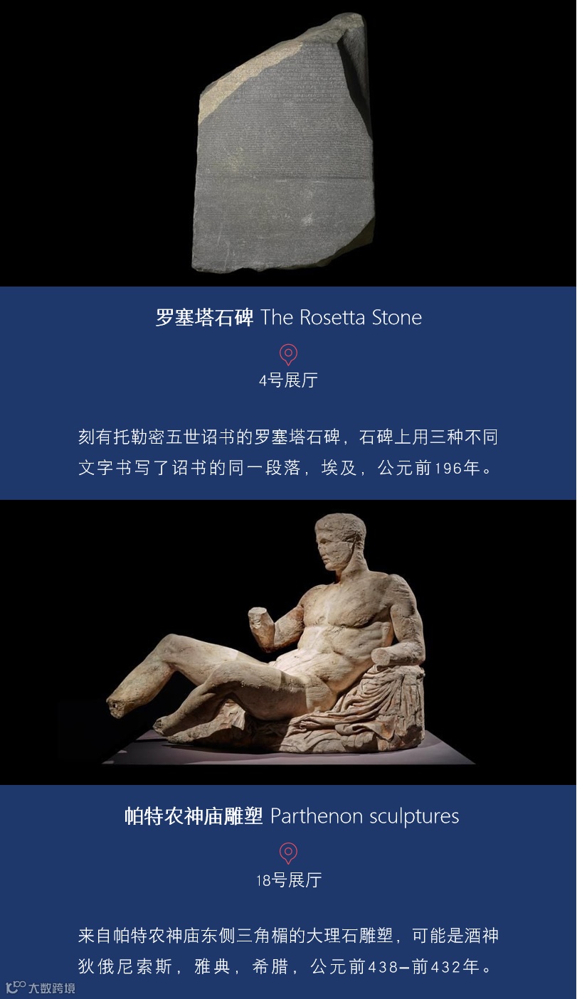 大英博物馆收藏了来自全球各地的800多万件文物,涵盖人类历史、艺术和文化的各个时期,部分代表性藏品包括: