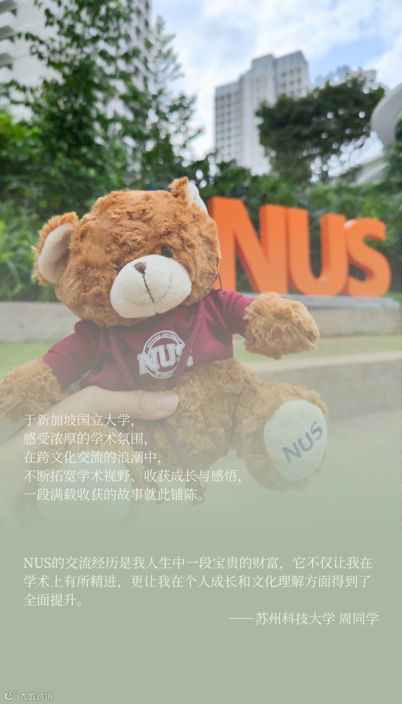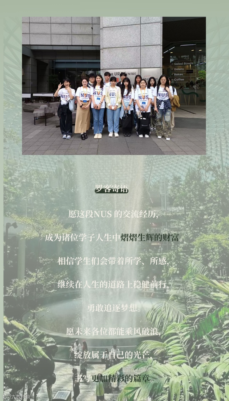 这段经历让我意识到,世界如此广阔,充满了无限可能。我将带着在NUS收获的知识、经验和感悟,继续努力学习和探索,为实现自己的梦想而奋斗。