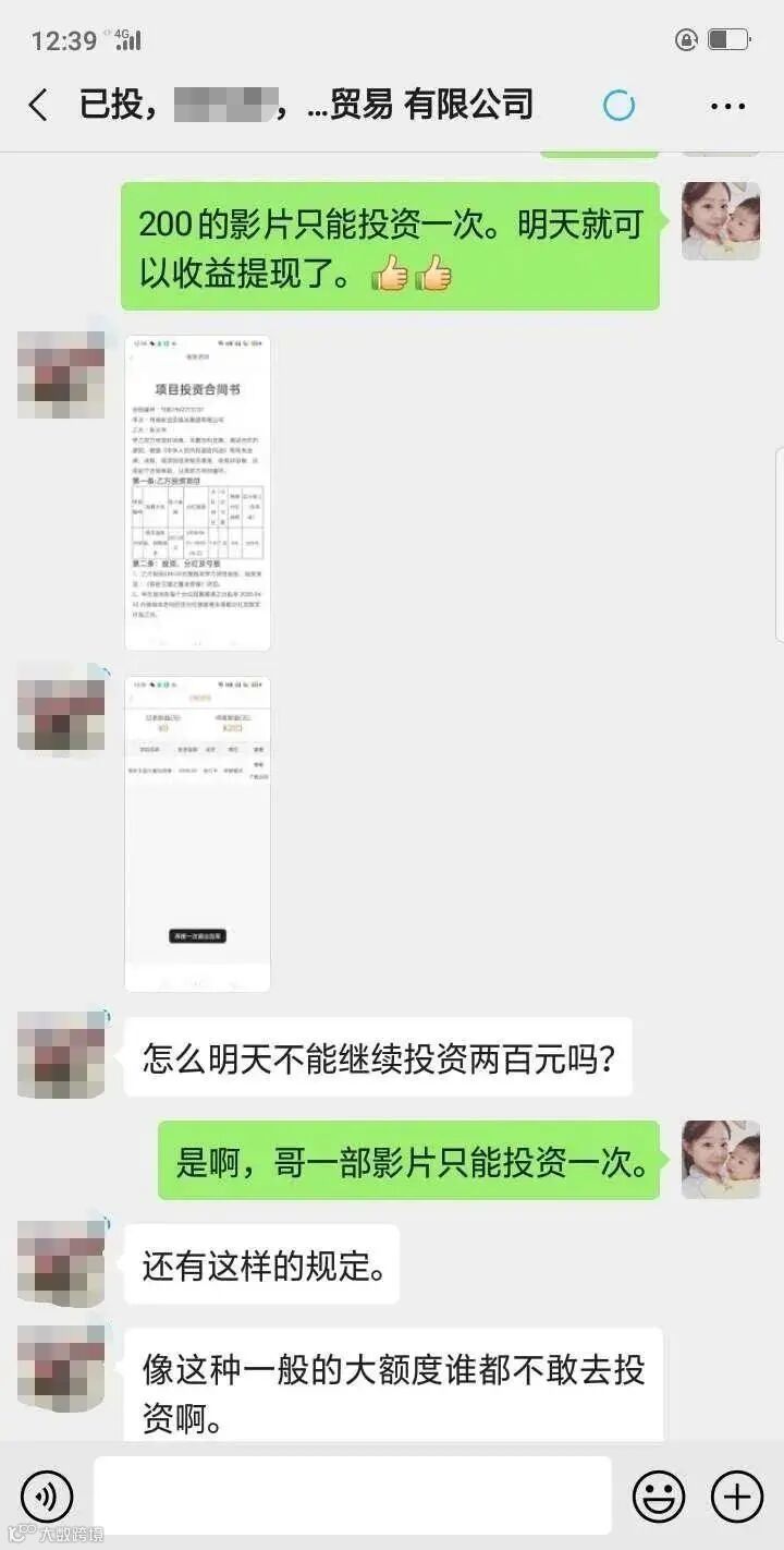 一开始两人也聊了一些关于投资的话题,几天后“刘江”向方女士推荐了一个叫“传递娱乐”的投资平台,并告诉方女士这是一个投资影视项目的平台,不仅投资门槛低,最低只要200元起投,收益还特别高,而且收益可以每天提现,资金安全有保障。