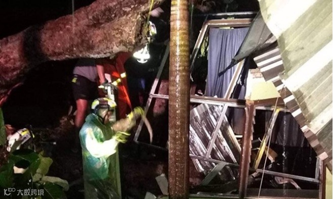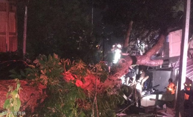 8月2日晚,泰国普吉府加图县(Kathu)警方接到当地民众报案称,强风暴雨导致当地一学校教师宿舍旁的大树被风刮倒,压垮了一间教师宿舍房,房间内有人员受伤,警方得知情况后立即赶往现场并通知当地救援队前来支援。