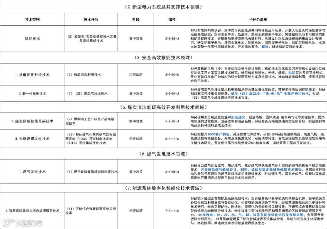此外,在其他重点项目中的子任务清单中也涉及氢能领域。