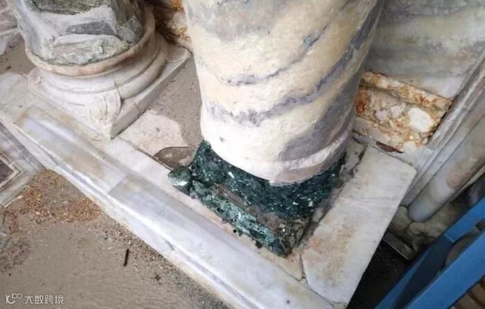 近期,逾半世纪以来最严重洪水重创意大利威尼斯,当地大量房屋、商店、古迹和文物遭到破坏。图为当地时间2019年11月19日,圣马可大教堂受到洪水侵袭,教堂柱子底部受损严重。图片来源:ICphoto