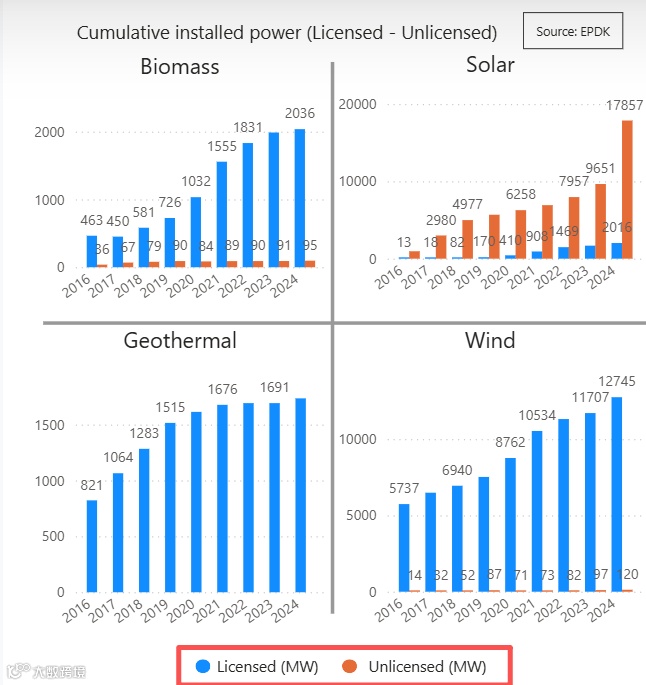 Unlicensed 项目为 Article 14 of Energy Market Law (No. 6446) 规定小于1MW的项目 ,同时也需要符合 Renewable Energy Law No. 5346 (YEK Law) / Unlicensed Electricity Generation Regulation (published by EPDK)的规范要求。