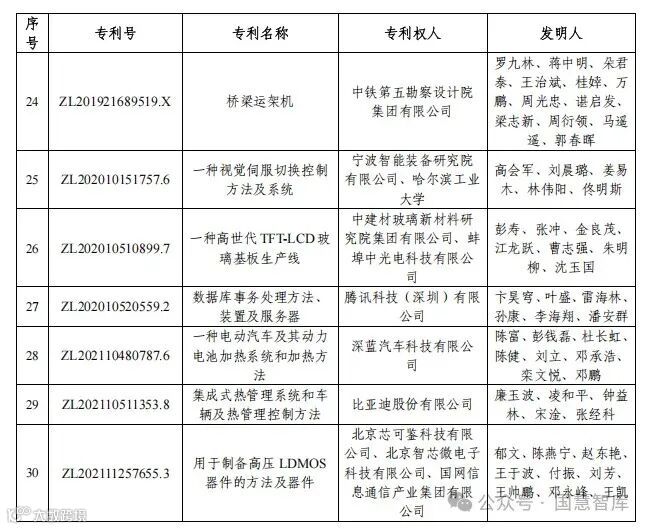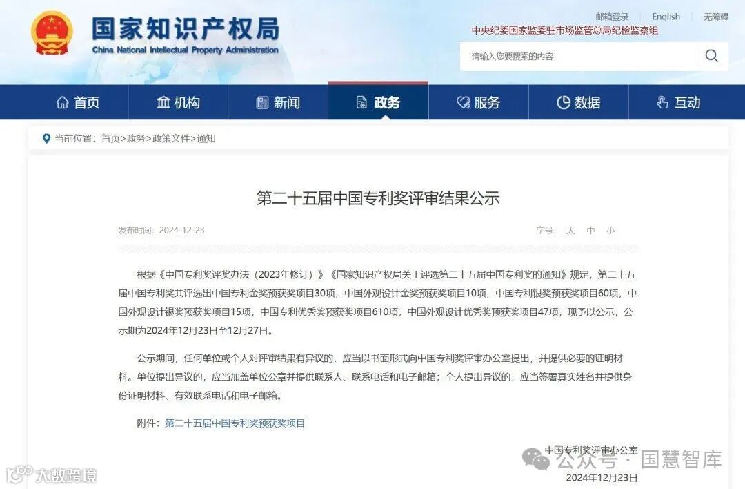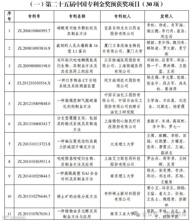 中国专利金奖、中国专利银奖及中国专利优秀奖从发明专利和实用新型专利中评选产生,评出中国专利金奖不超过30项、中国专利银奖不超过60项。