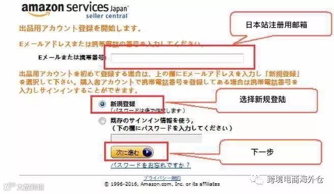 (注意:如果注册中间遇到问题导致中途退出后重新进入页面注册,则此时请选择“新规登陆”下方的“既存 XXXX”,并填写密码登陆后继续注册。