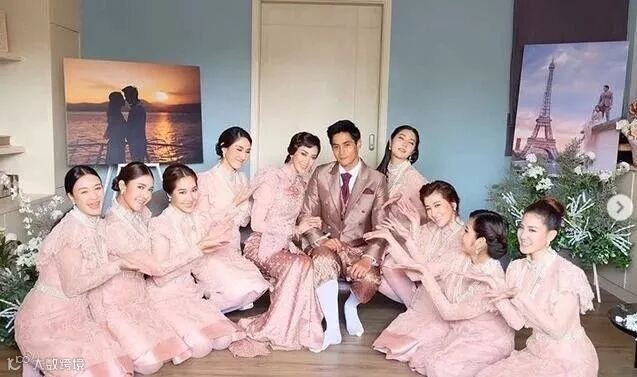 从照片上看来,穿着泰国传统婚礼服装的他们看起来是如此美丽与帅气。