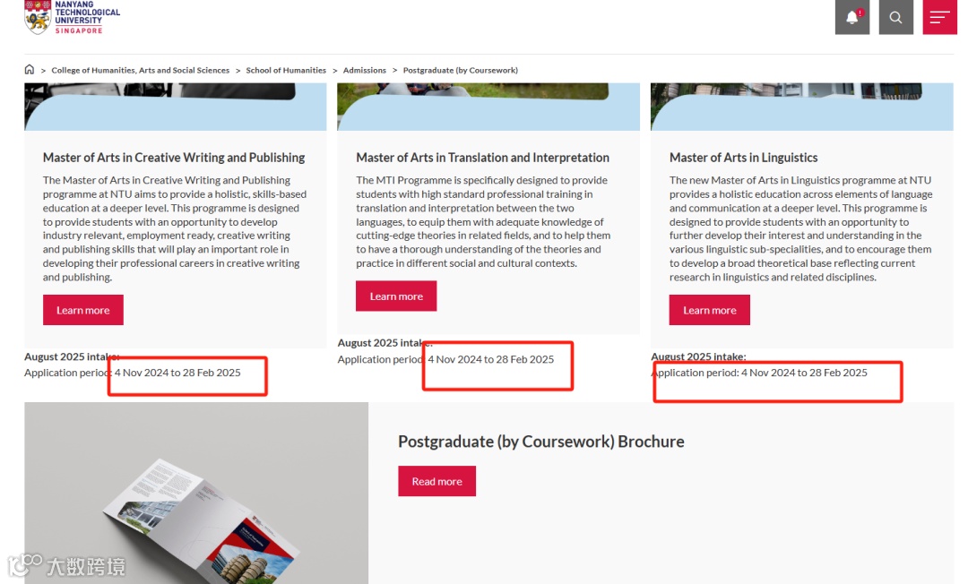 以Nanyang Technological University School of Humanities授课型硕士为例