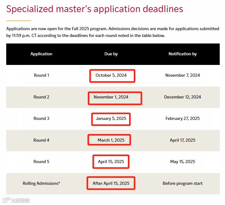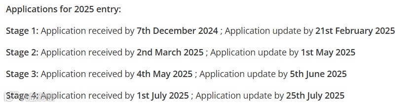 首轮申请deadline是2024 12.7,次轮是2025.3.2,后面还有多轮申请,所以对考研失利的同学来说还是有机会的,但是到后面几轮可能已经招满,所以还是建议早早申请,最好做考研、申请两手准备;