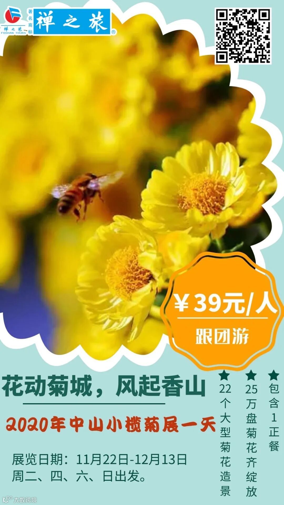 平日【2020中国·小榄菊花展览会】美食嘉年华、菊花造景及精品、文化展览区、追梦新时代、金秋小榄赏菊花造型展一天
