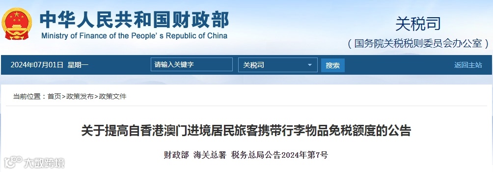 1、对自香港、澳门进境,年满18周岁的居民旅客,携带在境外获取的个人合理自用行李物品,总值在12000元以内(含12000元)的予以免税放行。同时,在设有进境免税店的口岸,允许上述旅客在口岸进境免税店购买一定数量的免税商品,连同在境外获取的个人合理自用行李物品总值在15000元以内(含15000元)的予以免税放行。