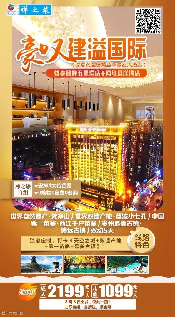 力荐自组【豪叹独山建溢国际酒店.品质升级】贵州梵净山、荔波小七孔、西江千户苗寨、镇远古镇双动五天