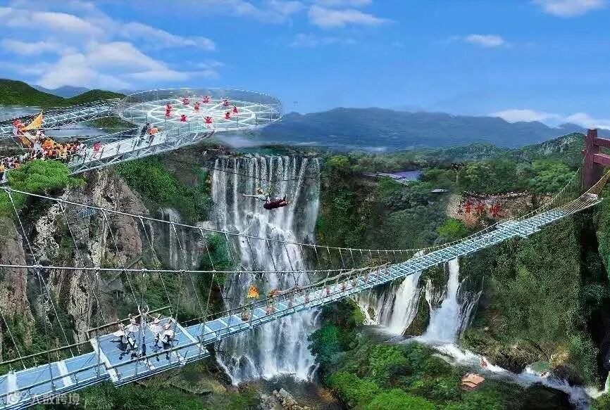 古龙峡玻璃大峡谷:又名云天玻霸,是世界首个集玻璃平台、玻璃栈道、玻璃索桥为一体的高空观光玻璃组合,同时融入了5D破裂效果、玻璃悬廊、玻璃台阶、凌空微步等高空挑战产品。玻璃峡谷位于万丈崖大瀑布的顶端,目之所及,悬崖峭壁、飞瀑擎天