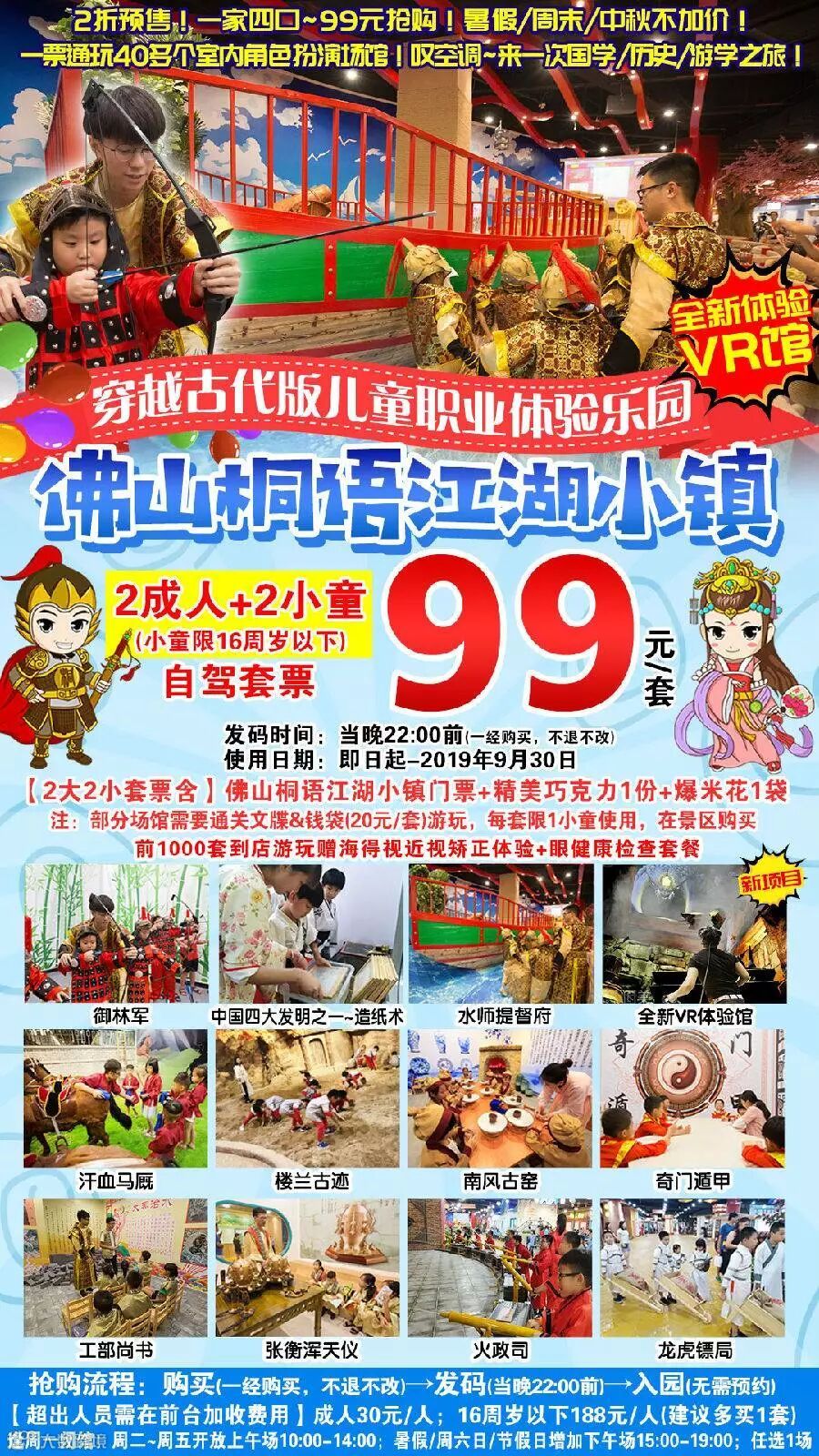 【套票包含】佛山梧桐江湖小镇2大2小(2成人+2小童,小童限16岁以下)门票+精美巧克力1份+爆米花1袋