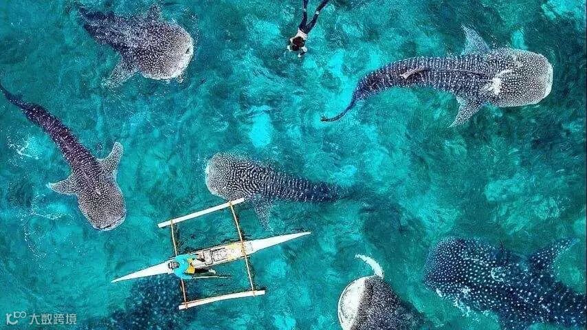 鲸鲨保育员将通过不断喂食,把鲸鲨聚集在一个 区域,游客可下海与鲸鲨共舞拍照,也可以在船上零距离观看鲸鲨