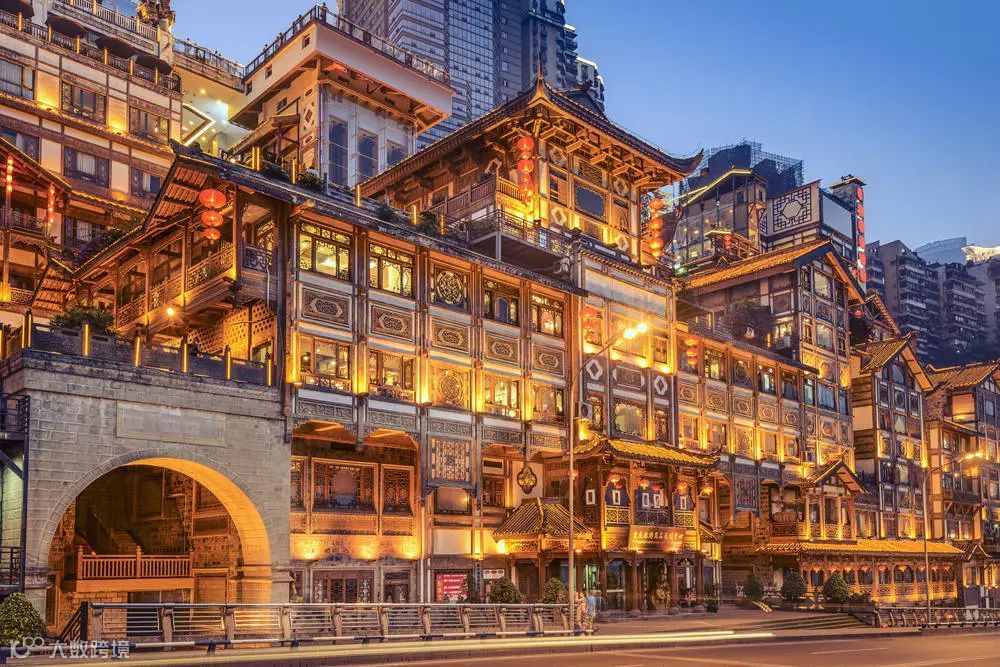 【洪崖洞吊脚楼】坐拥城市洪崖洞夜景旅游景观、和城市人文景观于一体。以最具巴渝传统建筑特色的“吊脚楼”风貌为主体,依山就势,沿江而建,游吊脚群楼、观洪崖滴翠、逛山城老街、赏巴渝文化、品天下美食。