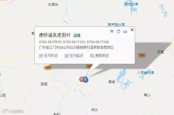 ◆ 地址:广东江门台山市白沙镇朗南村康桥温泉度假村