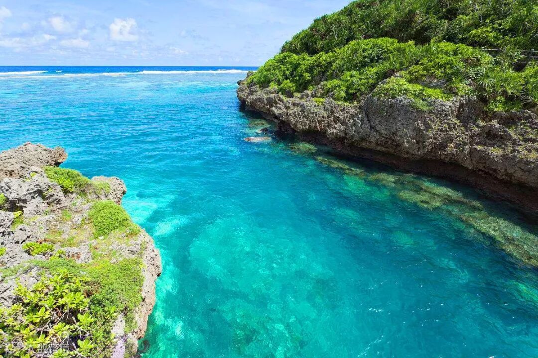 这里几乎没有河川,海水的透明度高,珊瑚礁和沙地所形成的不同的大海色彩被称为“宫古蓝”,白色沙滩与大海相映成辉,令人叹为观止,具有美。