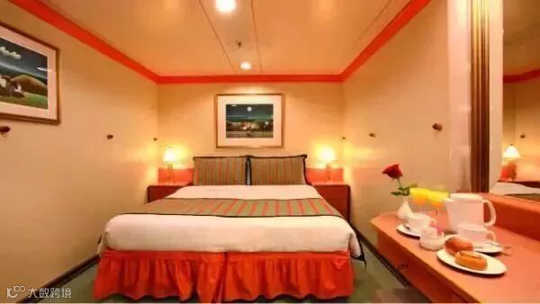 每间客舱最多可容纳2~4名乘客,内有两张单人床(可合并为大床)。