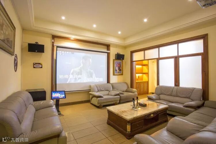一楼:一间1.5大床房,一间1.8大床房,独立投影KTV(或会议室)