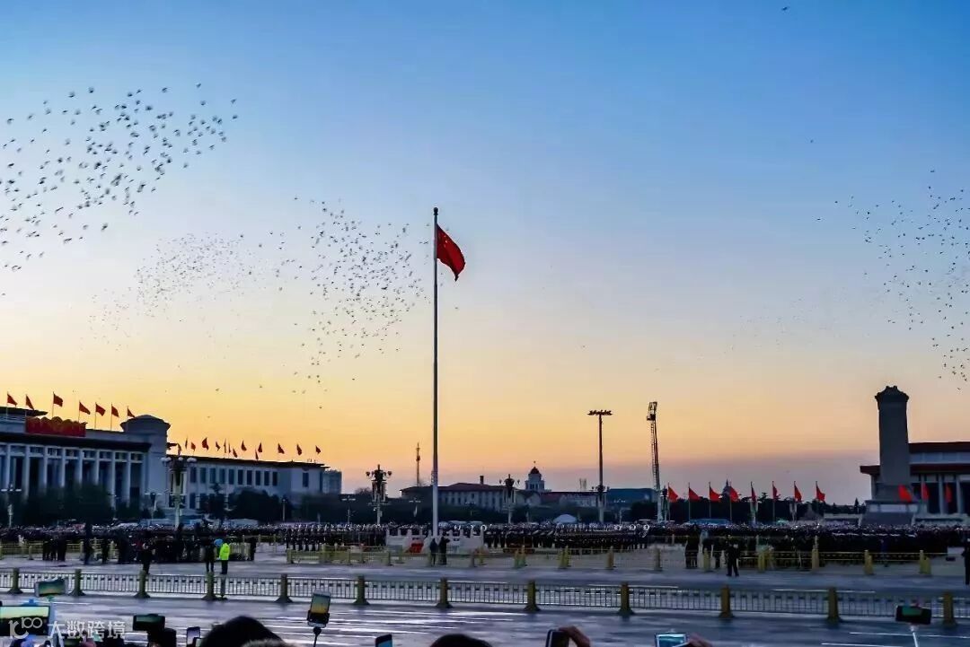 这天,到天安门盼望新的一年的到来,看着清早飘升的红旗,随着飞腾而起的白鸽,整个人也跟着雀跃和欣喜。